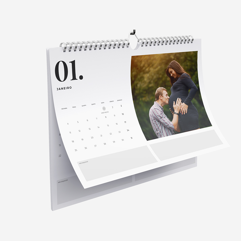 Os Calendários são impressos em papel couché de alta qualidade, com um acabamento em matte. Este tipo de impressão irá proporcionar uma imagem nítida com cores vivas e intensas, o que confere ao teu calendário uma maior durabilidade.